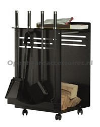 Unieke combinatie! Een houtbak met haardstel. Handschoenen, hout & lucifers worden apart verkocht.