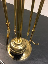Een messing 4-delig haardstel die met ambacht is gemaakt met antico look.