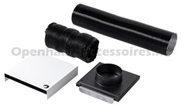Complete set, direct te installeren: inclusief wandrozet, flexibele aluminium aansluitbuis (zwart) en afsluitbaar buitenrooster voor nette afwerking – alles wat u nodig heeft in één pakket.