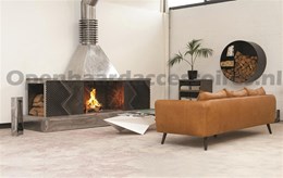Bevat genog ruimte voor stookhout en heeft vakjes voor overige openhaardaccessoires.